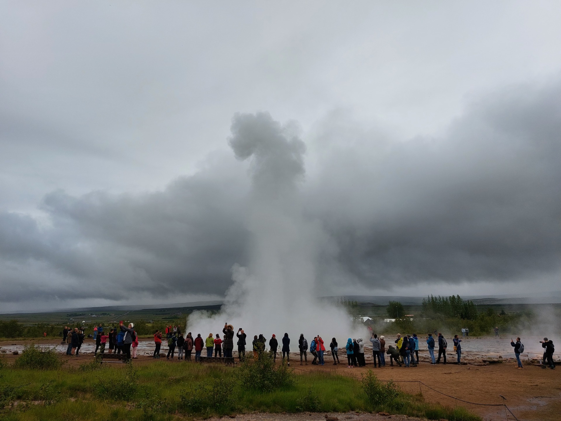 A geyzír kitörés hol közepes, hol nagyobb magasságokba lövelli ki a forró vizet.